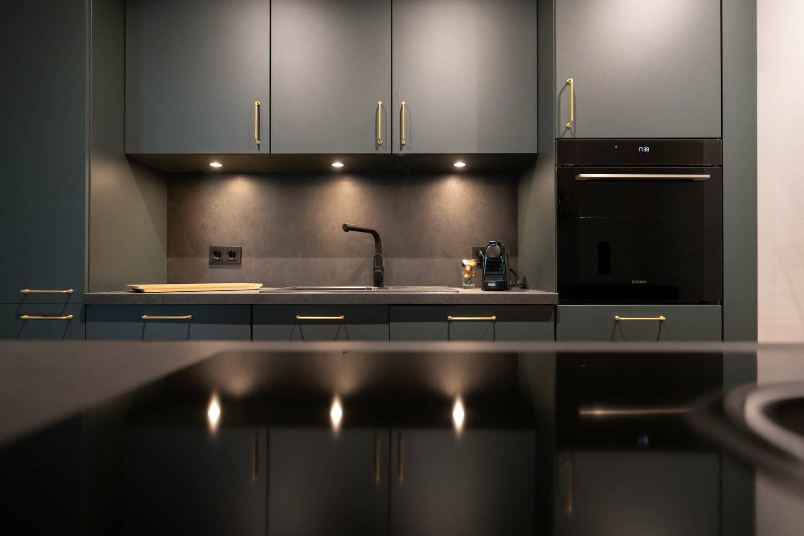 Die Wohnung überzeugt durch eine hochwertige Innenausstattung mit maßgefertigten Schreiner-Einbauten, darunter elegante Einbauschränke und ein stilvolles Sideboard, die den Räumen ein individuelles und exklusives Flair verleihen.
