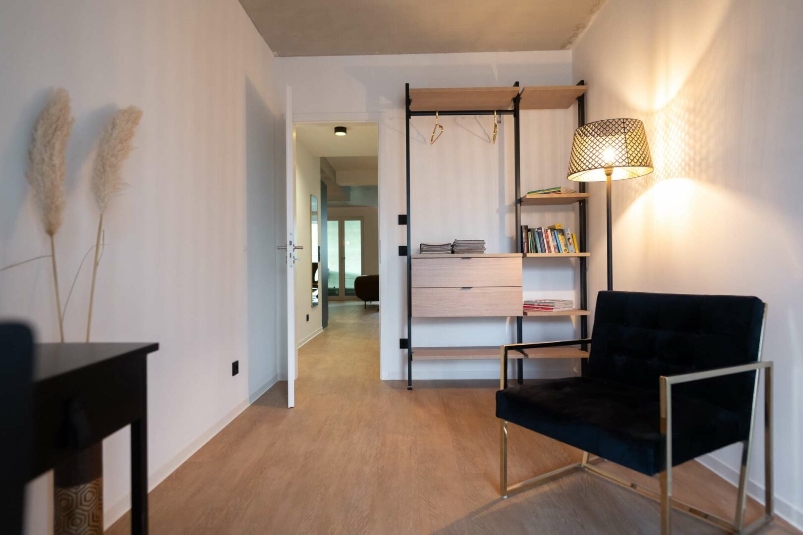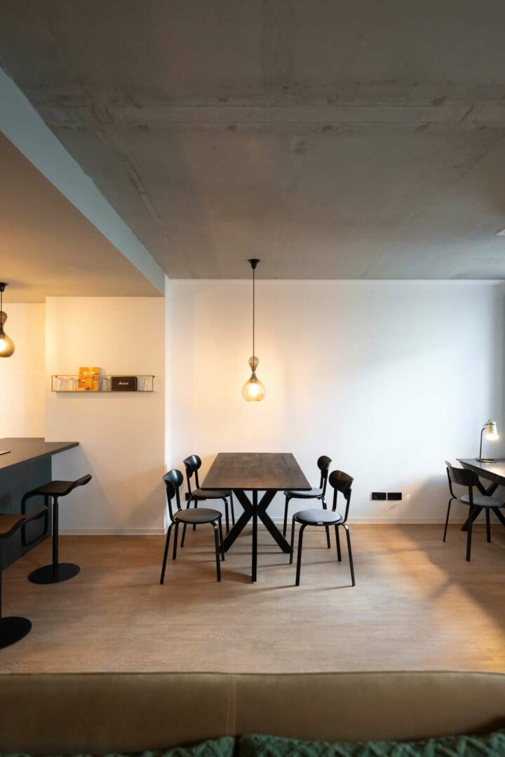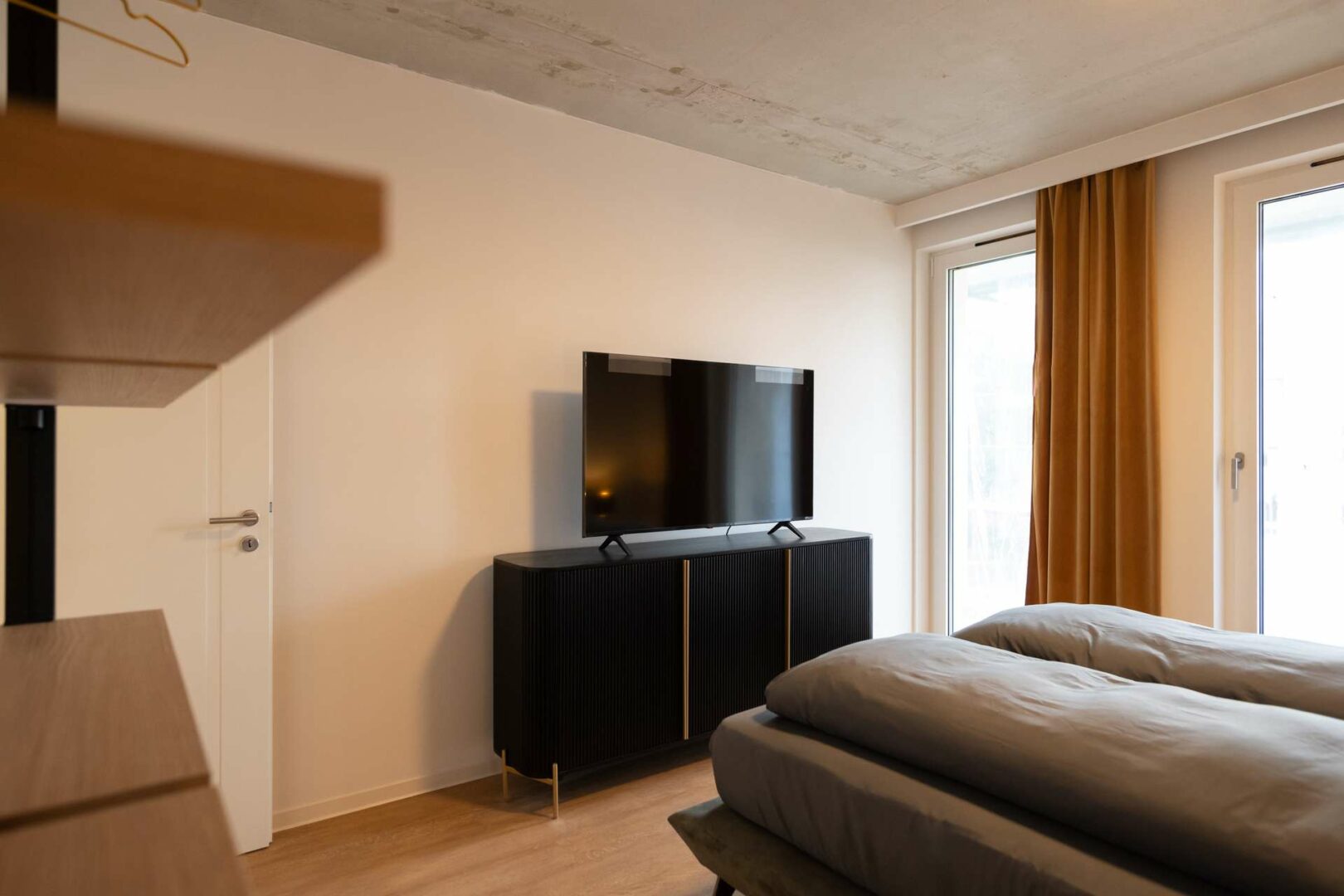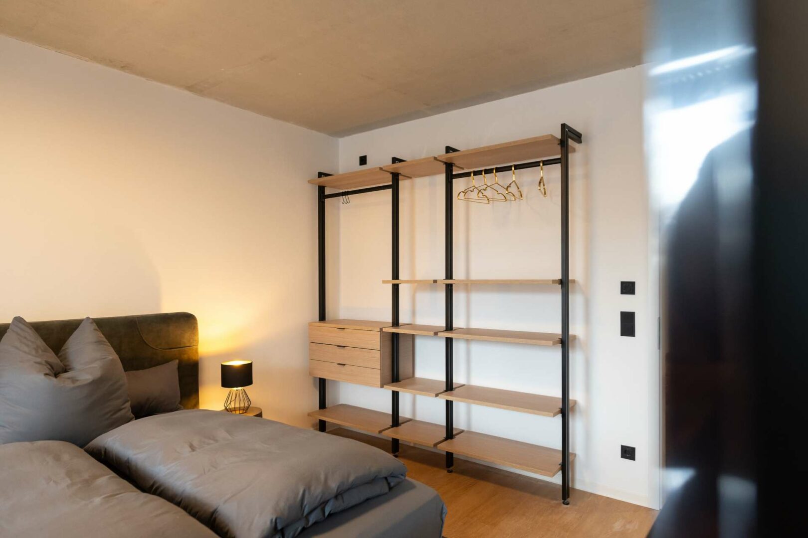 Die Wohnung besticht durch hochwertige, maßgefertigte Schreiner-Einbauten, darunter elegante Einbauschränke und ein stilvolles Sideboard, die für ein exklusives Wohnambiente und optimalen Stauraum sorgen.